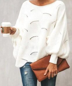 Hot Sale Casual Oversize Lantern Sleeve Rib Sweater