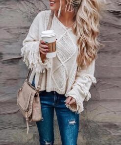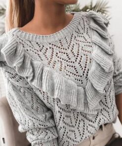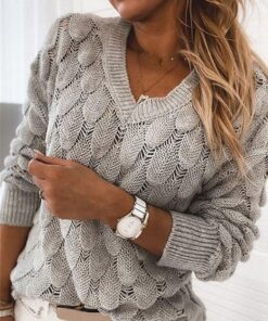 Three-dimensional Knitted Feather Hollow V-neck Long Sleeve Sweater