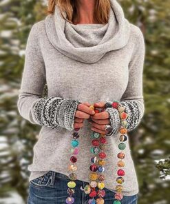 Tribal Vintage Cowl Neck Long Sleeve Shirts Plus Size Tops