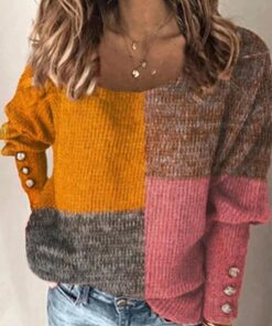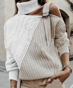 Women’s off-the-shoulder long sleeve colorblock sweater