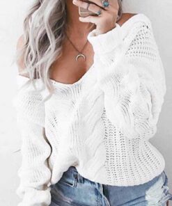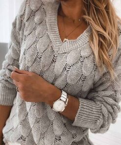 ⭐Loose V-Neck Wwist Long Sleeve Sweater