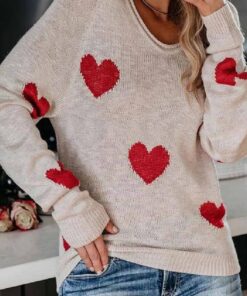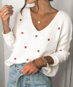 ⭐Loose V-Neck Heart-Shaped Knitted Sweater