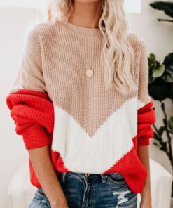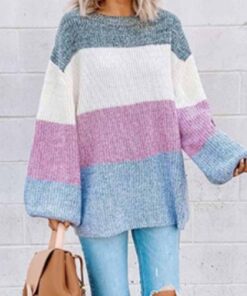 ⭐Contrast Striped Loose Round Neck Sweater