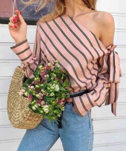 ⭐Slanted Shoulder Striped Top