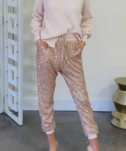 ⭐Ruffled High Waist Drawstring Sequined Pants(3 colors)