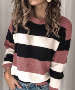 Striped O-Neck Contrast Sweater(3 Colors)