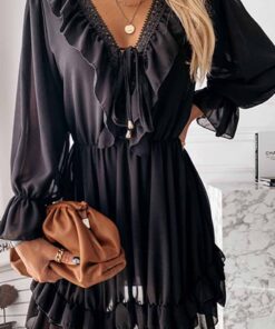 ⭐Sexy Black Lace Puff Sleeve V-Neck Lace Mini Dress
