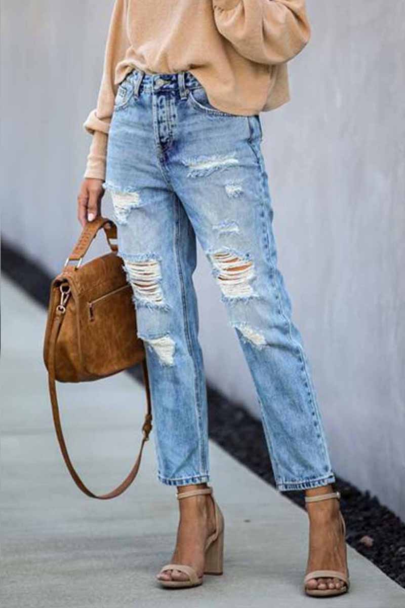 Soft denim, hole design will never be outdated. A pair of high heels will make you beautiful.