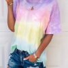 Short sleeve t-shirt with round hem, relax fit, easy to dress up or tuck into pants for a simple and trendy look.