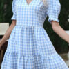 Be the first to review “?Fashion Sweet Plaid Split Joint V Neck A Line Dresses”