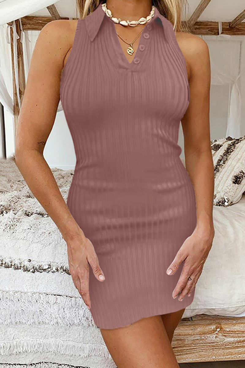 ?Street Solid Split Joint Halter Pencil Skirt Dresses(6 colors)