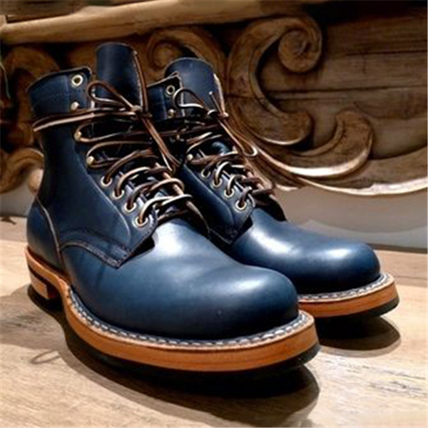 ⭐ Men Handmade Navy Blue Lace Up Combat Boots Dress Boots