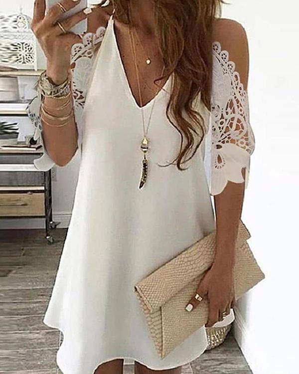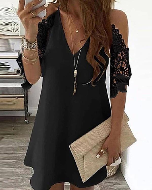 Cold Shoulder Crochet Lace Hollow Out Casual Dress
