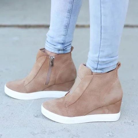 Comfort Zipper Wedge Sneakers Zipper Faux Suede Casual Sneakers