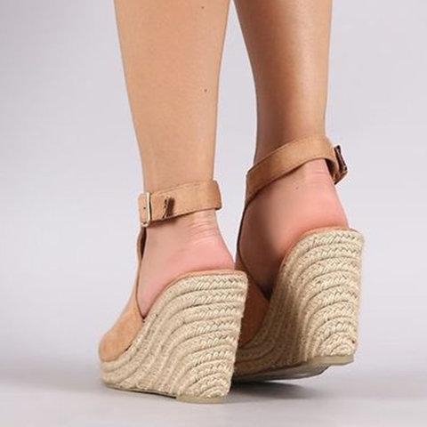Espadrille Wedge Heel Sandals Adjustable Buckle Peep Toe Sandals