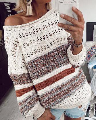 Fall Hollow Out Women Sweater Casual Printed Shirt &Tops
