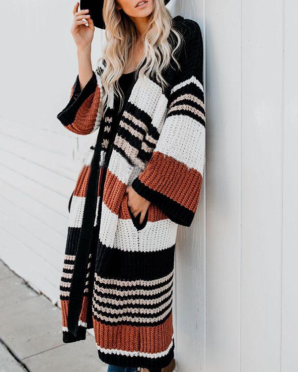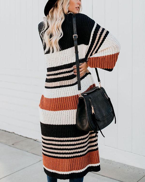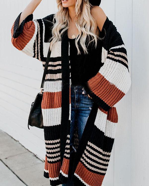 Fashion Loose Stripe Knit Sweater Cardigan Long Coat