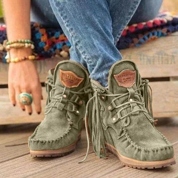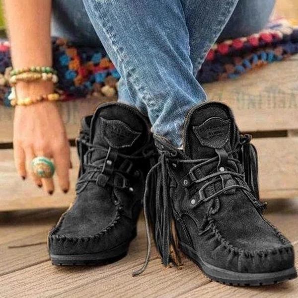 Be the first to review “Fringed Lace-up Women’s Booties”