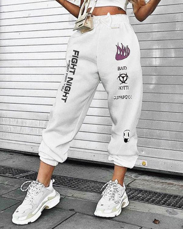 High Rise Lace Up Lettering Graffiti Print Sweatpants