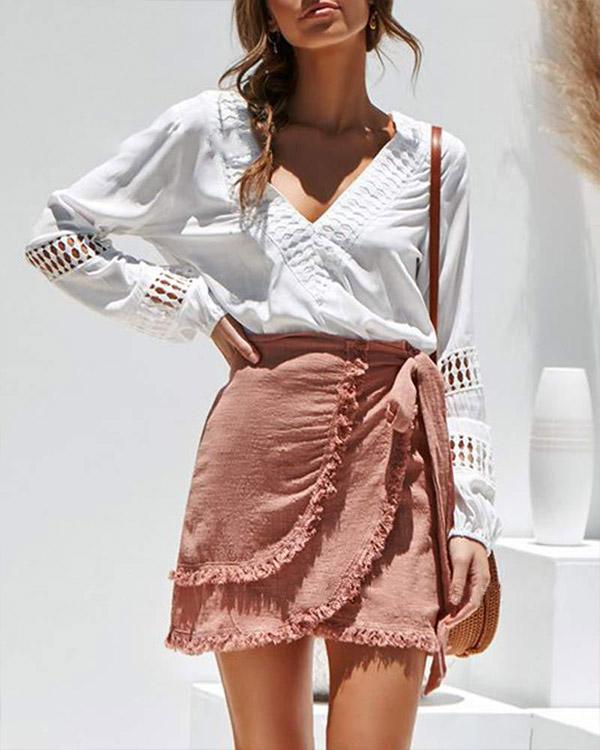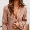 Be the first to review “Lace Splicing Hollow Out Deep V-Neck Blouse”