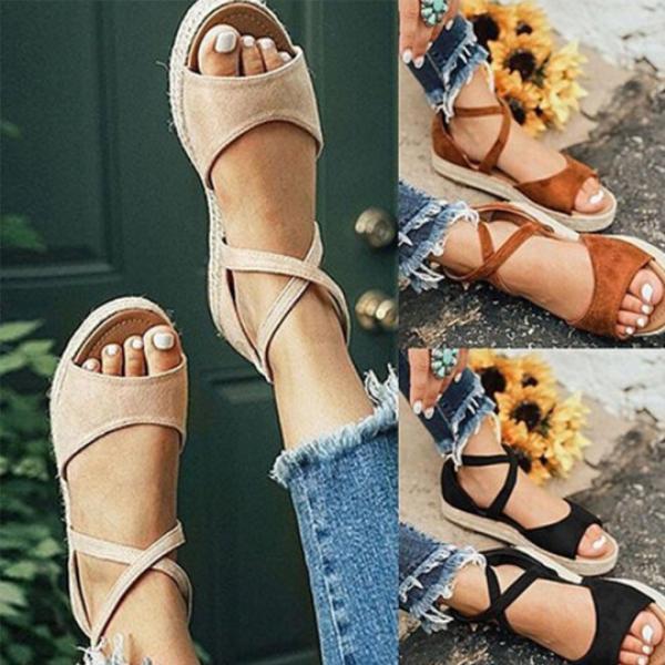 Large Size Women Fashion Flat Heel Strap Flats Sandals Lace-up Sandals