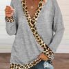 Leopard Patchwork V Neck Loose Fit Shirts&Tops