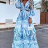 Be the first to review “Long Sleeve Print V-Neck Floor-Length Expansion Women’s Dress”