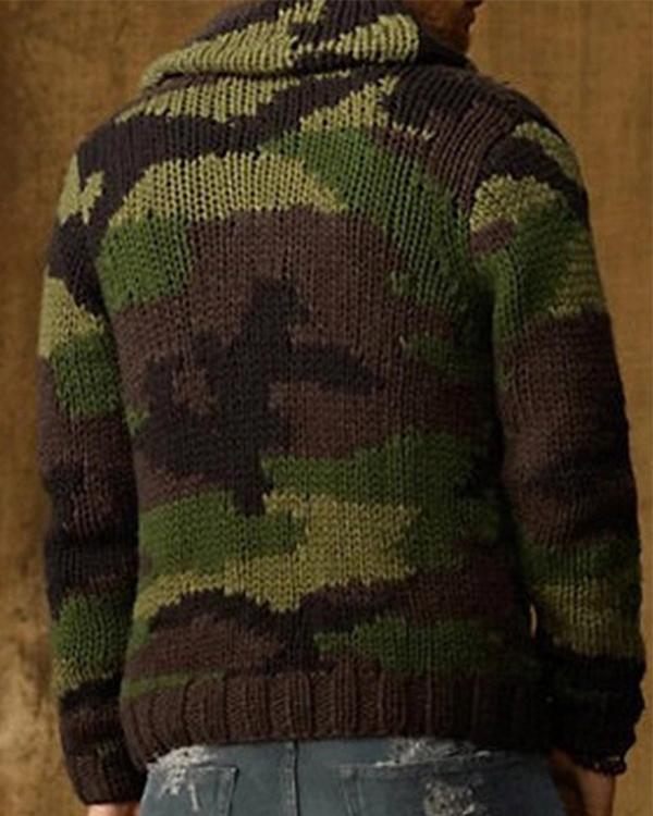 Men Turn-Down Collar Cardigan Autumn Winter Camouflage Comfortable Coat*