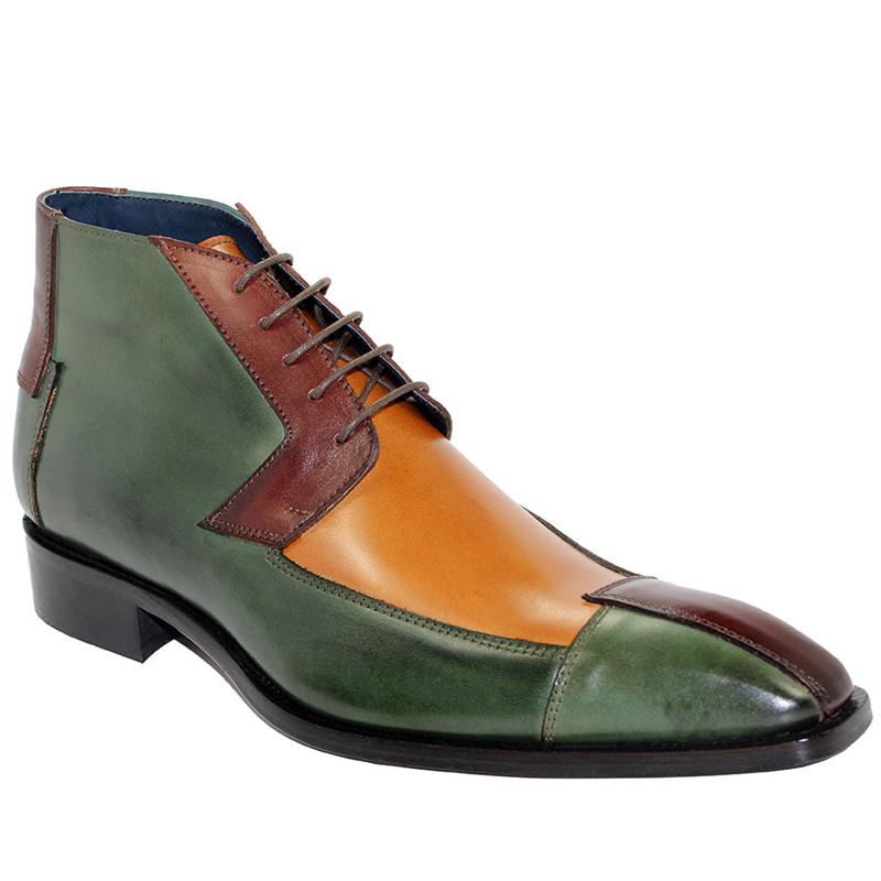 Men’S Italian Shoes Calf-Skin Leather Brown Tri-Tone Boots