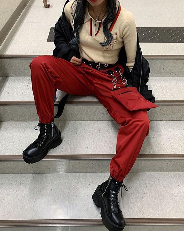 Be the first to review “Metal Ring Detachable Pocket Streamer Pants Cargo Pants”