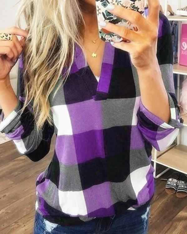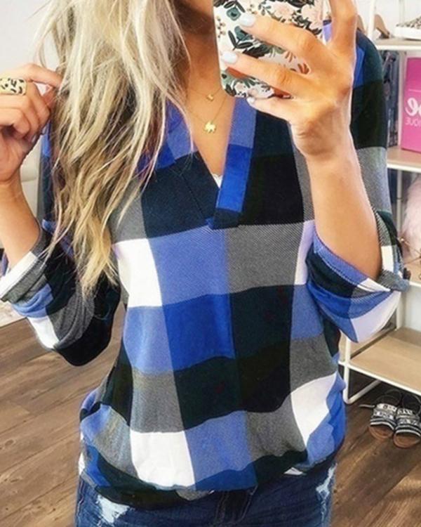 Be the first to review “Plaid V-neck Long Sleeve T-shirt”