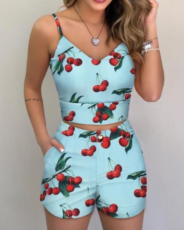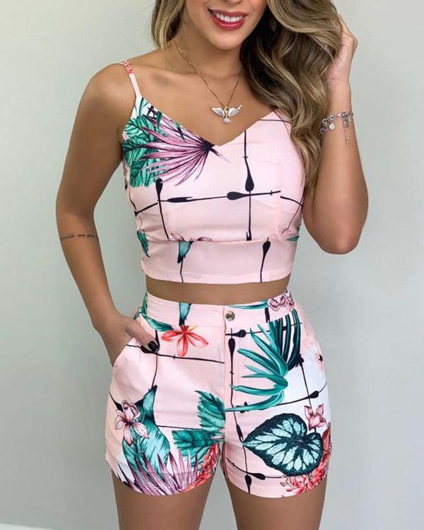 Print Spaghetti Strap Crop Top & Skirts Dress Sets