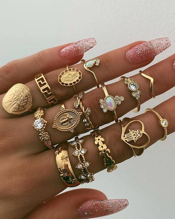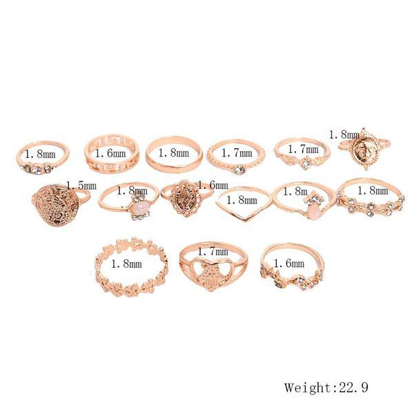 Rhinestone Gold Ring Set