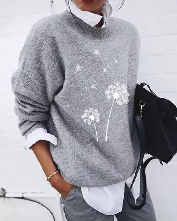 Be the first to review “Round Neckline Print Casual Loose Shift Sweaters”