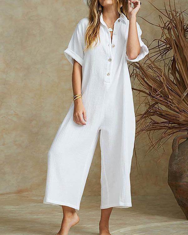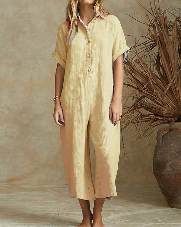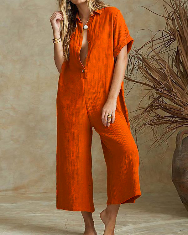 Solid Casual Wide Leg Buttoned Jumpsuit