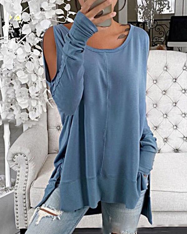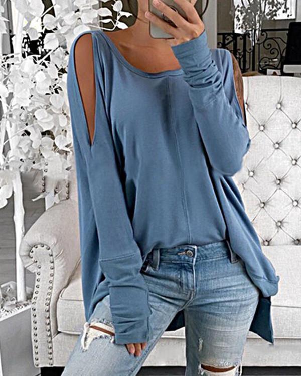 Solid Cold Shoulder Long Sleeves Casual T-shirts