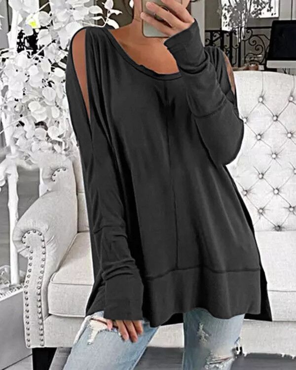 Be the first to review “Solid Cold Shoulder Long Sleeves Casual T-shirts”