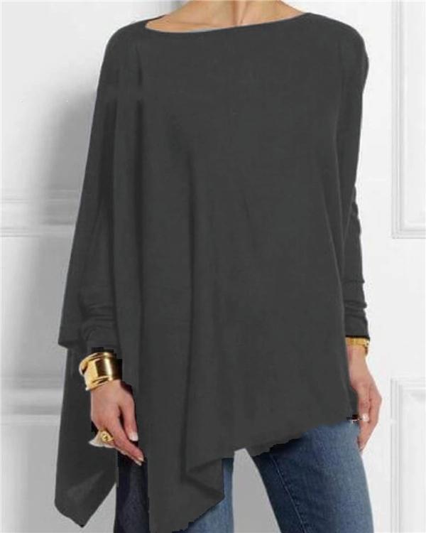 Solid Long Sleeve Crew Neck Casual Irregular Blouses Tops