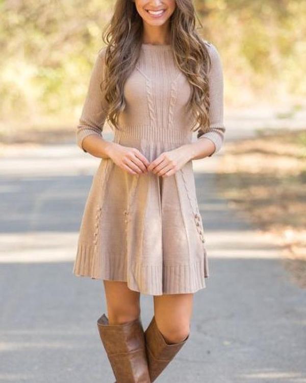 Be the first to review “Solid Long Sleeves A-line Above Knee Crew Neck Dress”