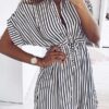 Striped Drawstring Lace-Up Dress