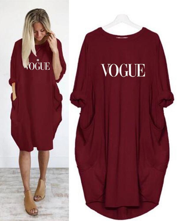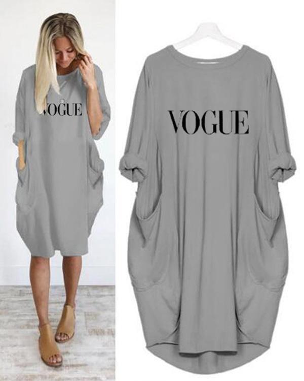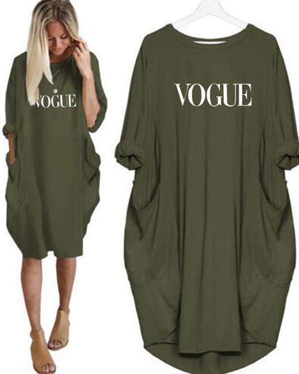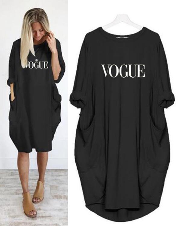 Summer Women Letter Printed Casual Pockets Plus Size Dress