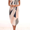 Soft material, light and comfortable, a must-have women dress in your wardrobe. V-Neck, Geometric Pattern, Floral Print, Short Sleeves, Two Side Split belted dress. Trendy and chic women dresses, make you look more charming and attractive! (We have plus size)
