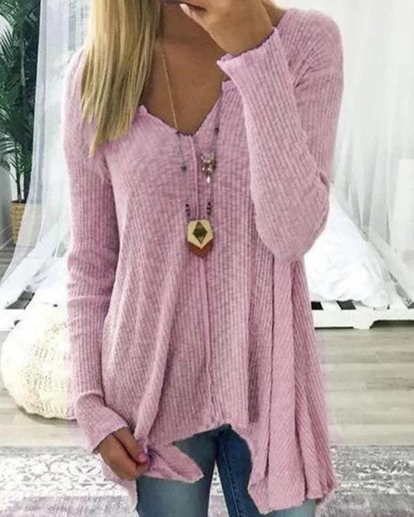 Be the first to review “V neck Cotton Solid Casual Long Sleeve Sweater”