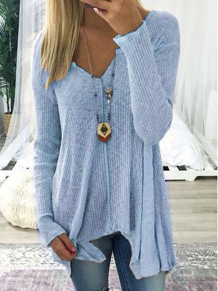 V neck Cotton Solid Casual Long Sleeve Sweater