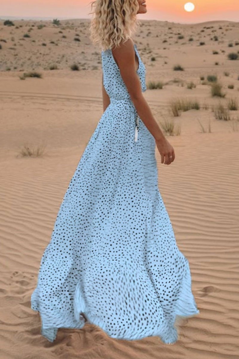 V Neck Dot Printed Floor Length Dress(3 Colors)