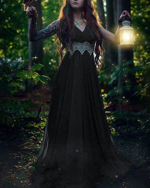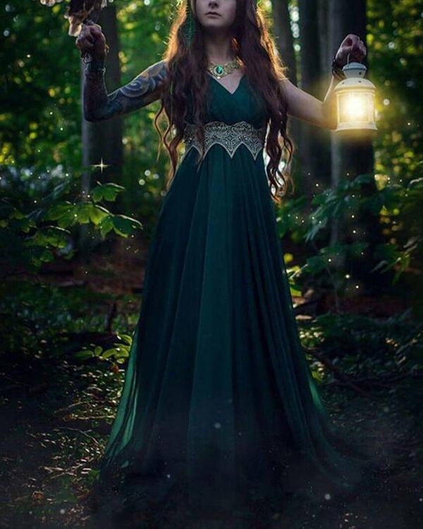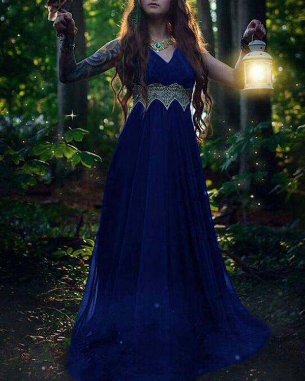 V-neck Pullover Mopping Floor Victorian Retro Dress