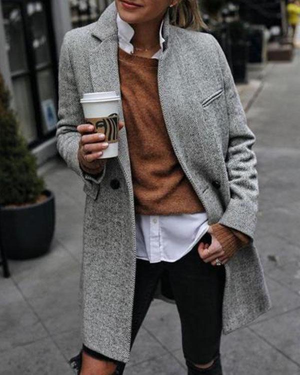 Vintage Button up Slim Winter Women’s Mid Length Overcoat