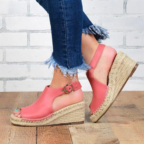 Women Buckle Wedge Sandals