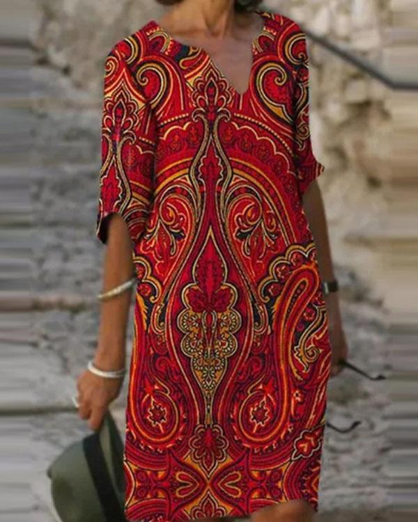 Women Casual Daily Printed Half Sleeve Shift Midi Dress*