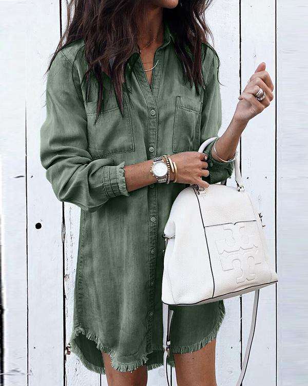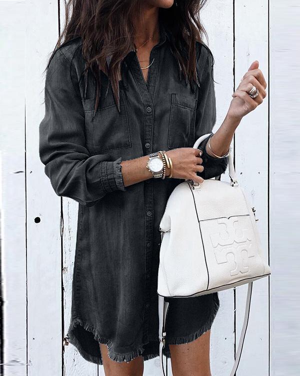 Women Casual Denim Shirt Dress Long Sleeve Loose Shirt Dress